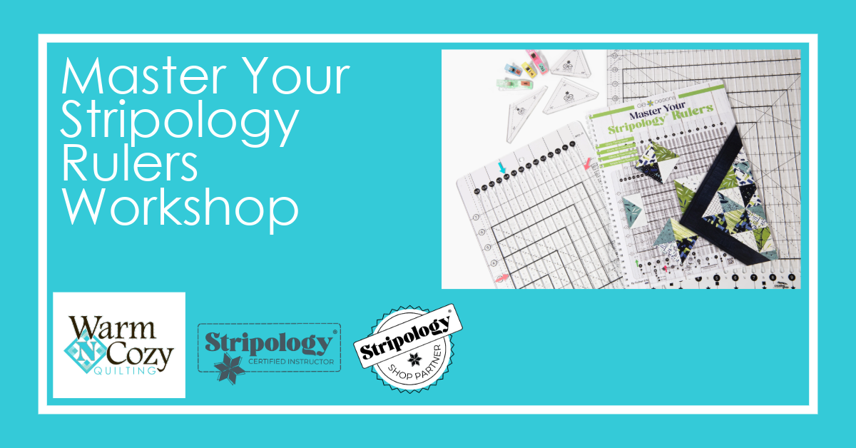 | Requirements: | You must bring at least 1 Stripology Ruler with you to class, please bring all the stripology rulers you have. Also needed to attend the class you will need, 1.G Easy point trimmers 2. G Easy arrow stickers 3. Master Your Stripology Ruler Book These items can be purchased at the beginning of class or bring yours from home. Please bring a rotary cutter and small cutting surface (18"x24" is ideal) if available. You do not need your sewing machine for this workshop as we will be focusing on cutting. |